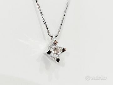 Collana punto luce con Diamante 0,07 ct in Oro Bianco 18kt ( 750 ) - 1,30 gr circa