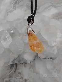 Bellissima collana con ciondolo in quarzo citrino, montato su una treccia in pelle nera.