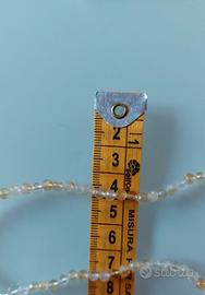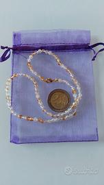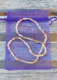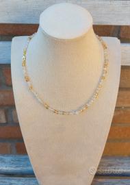 Collana girocollo a 1 giro realizzata con perle sfaccettate di Quarzo Citrino ( pietra natutale di mm 4,vedi foto per dimensione) e gancino in metallo placcato oro. 📌📌📌Lunghezza collana, compreso chiusura, cm 40📌📌📌 Consegno con sacchettino organza-Nuova