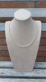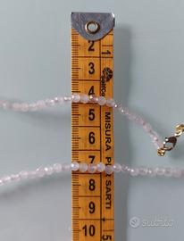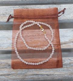 Collana girocollo realizzata con perle sfaccettate di Quarzo Rosa, pietra naturale di mm 4 e gancino in metallo placcato oro chiaro. ๐๐ Lunghezza totale collana, compreso chiusura, cm 41๐๐ Consegno con sacchettino organza