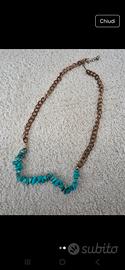 Bellissima collana con catena in rame e pendente di pietre turchesi.