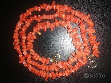 Collana realizzata con rametti di corallo naturale. - Chiusura a moschettone. - Pezzi irregolari di corallo. - Lunga cm 46