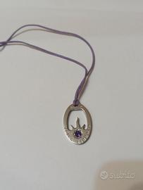 Collana marca Rebecca, con ciondolo in acciaio e pietra viola Nuova