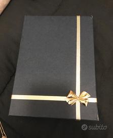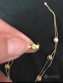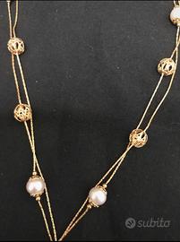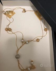Collana donna in oro giallo ,con perle e pendentev,nuova con scatola .