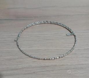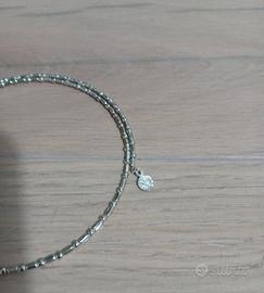 Collana Vestopazzo (ciondolino con V della marca) modello girocollo in acciaio anallergico, composta da perline rotonde e allungate.Adatta ad ogni collo perche' si allarga (come da foto).Perfetta mai usata.