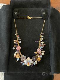 Collana Rivalta oro 18KT con fiori in smalto oltre a tormaline perle e piccoli brillanti misura cm 40 ritiro a mano su Milano