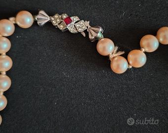 Collana vintage anni ‘50/’60, in perle naturali annodate, chiusura in argento. Lunghezza 60