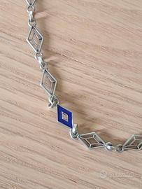 Vendo causa inutilizzo collana in argento 800 e smalto blu, tema rombi, ottime condizioni, circonferenza 45 cm circa, astenersi perditempo.