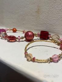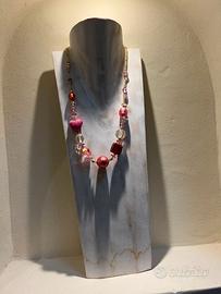 Collana rosa con preziosi dettagli, originale in vetro di Murano con confezione, comprata da un negozio in svendita e mai usata.