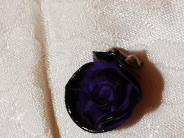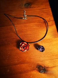 Collana con rosa rossa e ciondolo di rosa viola entranti fatte a mano.