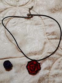 Collana rosa rossa più ciondolo rosa viola