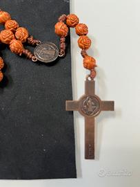 Collana rosario grano rosse in plastica con croce e crociera metallica stampata