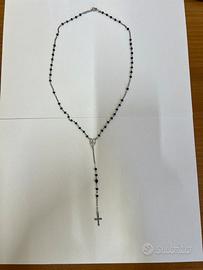 Collana Rosario Uomo Argento con cristallo nero.