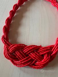 Collana rossa elegante con perline intrecciate e design a nodo decorativo. Stile statement, perfetta per dare un tocco di colore a qualsiasi outfit. Ideale per occasioni speciali oppure per valorizzare un look semplice. Condizioni: molto buone, pulita e pronta all’uso. Chiusura regolabile con catenella. Colore: rosso acceso. #collana #collanarossa #collanaintrecciata #collanastatement #collanaelegante #collanaperline #collanacorta #accessoridonna #bijoux #collanamoda