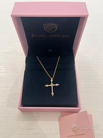 Chiara Ferragni. Collana unisex con croce pendente. Dorata con croce impreziosita da pietre di zirconia cubica.