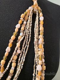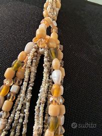 Lunga 150 cm, splendida collana "sciarpina" in perle di fiume, pietre dure, vetri opaline, colore crema, avorio, oro, bronzo.Utilizzabile sia lunga che a doppio giro Elegantissima e moderna.Perfetto regalo per S Valentino