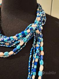 Lunga 150 cm, splendida collana "sciarpina" in perle di fiume, pietre dure, vetri opaline, colore crema, avorio, azzurro, blu.Utilizzabile sia lunga che a doppio giro Elegantissima e moderna.Perfetto regalo per S Valentino