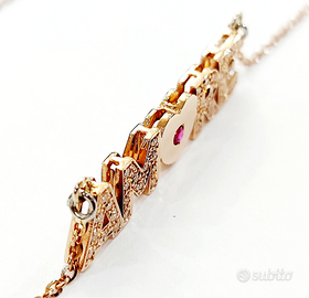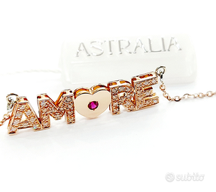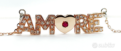 Collana con scritta amore con cuore firmata "Astralia" con Diamanti e Rubino lavorata in Oro Rosa - 18 kt - ( 750 )