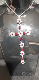 Collana con pendente snodato in Swarovski, bianchi e rubino prima luce. Girocollo cm 42, possibilità di richiedere allungamento di cm5. Disponibile anche con Swarovski bianchi e acquamarina azzurra. Pendente cm