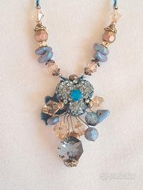 Collana Sodini in vari materiali Colori principali: turchese, beige, marrone Ciondolo ricchissimo Lunghezza cm 42 Fornita con sacchetto originale #collana #collanasodini