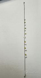 Vendo collana marca SODINI modello "collana stelle e tondi" in ottone color argento formata da una catena con piccole sfere (lunga in totale 43 cm) impreziosita da charm pendenti a forma di stelle e tondi gialli + una stella centrale.