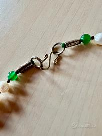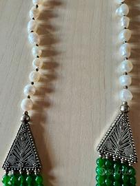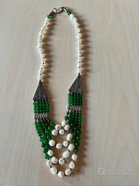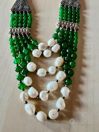 Collana Statement Multistrato Verde e Perle