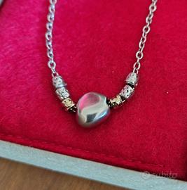 Collana stile Dodo (non Dodo originale), con 4 granelli martellati in argento 925 + 2 granelli martellati in argento 925 dorati + 1 pepita in argento 925.