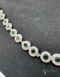 SPECIFICHE TECNICHE * Modello: Angelic Una Swarovski. * Colore: Verde smeraldo intenso e cristalli pavé. * Dimensioni: Larghezza 0,6 cm, lunghezza regolabile (da 38 a 40 cm). * Regolazione: Sistema di maglie rimovibili per una vestibilità perfetta. * Chiusura: Clip sicura e discreta. CONDIZIONI E GARANZIA * Condizioni: 10/10 (Mai indossato). * Autenticità: Prodotto autentico al 100%. * Difetti: Nessuno. Brillantezza originale preservata. Completa di confezione originale