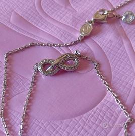 Questa splendida collana è caratterizzata da un simbolo dell’infinitoun’intramontabile rappresentazione di bellezza che non sfiorirà mai. Il gioiello placcato rodio, con il suo grazioso motivo impreziosito da un pavé di cristalli Cry, si indossa su una delicata catenina. Un singolo Swarovski Zirconia è inserito sul prolungamento per aggiungere al gioiello un tocco di lusso in più. Regala questa creazione a una persona cara o indossala per impreziosire il tuo stile di tutti i giorni. Con scatola originale, certificato del brand e busta Store Swarovski. Ottima idea regalo!