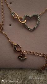 Collana Swarovski dorata con cuore in Swarovski e infinito dorato con chiusura di sicurezza e logo paperella Swarovski. Nuova mai indossata senza scatola. Ultima collezione.