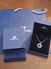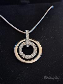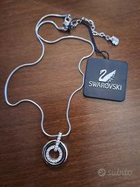 Collana Swarovski donna con pendente, 681251, bianco rodio, 2 cerchi con pave' di cristallo Swarovski. misura 38 cm regolabile.