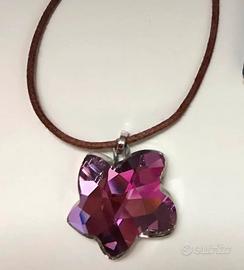 Collana Swarovski con ciondolo rosa e laccetto di cotone. Mai usato. Con confezione.