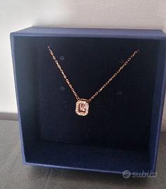 Splendida collana Swarovski originale della collezione Millenia. Il pendente presenta un cristallo rosa vibrante dal taglio Octagon, incastonato in una cornice di piccoli cristalli trasparenti. Elegante e senza tempo.