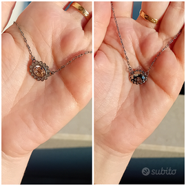 Collana "Mimosa Oval" SWAROVSKI rodiata in tono brunito con ciondolo in cristallo sfaccettato ovale color champagne/pesca incorniciato da piccoli cristalli scintillanti.