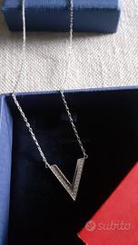 Vendo girocollo, lettera V con brillantini, nuovo, con scatola e certificato.