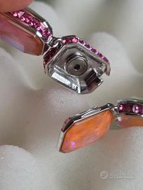 Composta da una serie di cristalli taglio goccia e ottagono, la collana presenta un innovativo meccanismo di collegamento che consente di alternare la tonalità predominante tra verde e arancione. Incorniciato da cristalli rosa taglio baguette, questo design rodiato include anche una chiusura nascosta che crea una finitura impeccabile.
