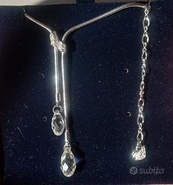 Bellissima collana Swarovski, delicata ed elegante. Impreziosita con due cristalli a goccia, dettagli color argento, nuova con scatola.