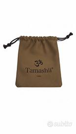 Collana della linea Bandiere Tibetane in argento 925 anticato con trattamento isolante per conservare il più possibile il colore originale dell'argento, il cordino è in cotone cerato marrone. Le celebri bandiere della preghiera Lung-Ta vengono poste in luoghi estremamente isolati come sulle cime delle montagne Himalayane, in ambienti più comuni come case oppure in luoghi di culto come monasteri e templi Buddhisti. Sulle bandiere solitamente sono impressi dei Mantra che invocano armonia,compassione, saggezza, forza, pace e protezione. Si ritiene che il vento trasporti nell'aria, e nei luoghi circostanti, le benedizioni delle preghiere riportate su di esse. Sul ciondolo è inciso il Mantra "Om Mani Padme hum" del Buddha Cenresig, sul retro invece è inciso il logo Tamashii. La dimensione del ciondolo è di 1,2 cm x 3 cm