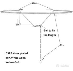 Vendo splendida collana tennis elegante e luminosa, realizzata in vero Argento 925 placcato oro bianco, con zirconi brillanti da 2.0 mm incastonati uno ad uno per un effetto super raffinato e di grande impatto.
