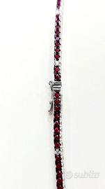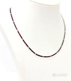 Collana Tennis eternity tornito in Oro Bianco con punte brunite con Diamanti ct 0,55 e Rubini 7,36 ct - 18 kt ( 750 ) - 15,20 gr con certificazione gemmologica dell'istituto gemmologico Gem-Tech