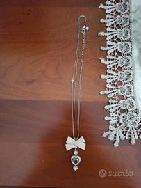 collana Thun come nuova con pendente cuore bianco e fiocco