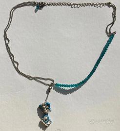 Deliziosa collana Thun con ciondolo a forma di farfalla. Collana con pendenti in ceramica e cristalli azzurri silver.