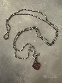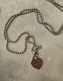 Iconica collana di Tiffany & Co. a palline, in argento con pendente a cuore Heart Tag piccolo. Acquistata a New York. Lunghezza: 86,5 cm. Vendibili anche separatamente: -collana: 150 € -pendente: 130 €