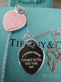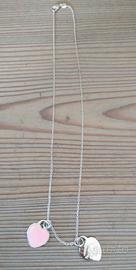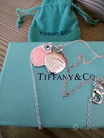 Collana Tiffany & Co. della celebre collezione Return to Tiffany, modello con doppio cuore (Double Heart Tag). Vendo per regalo da persona non gradita. Il gioiello è nuovo, mai indossato, ed è realizzato in argento sterling 925 con finitura smaltata nel classico e raffinato colore rosa. Caratteristiche principali: Materiale: Argento 925 e smalto rosa. Lunghezza catenina: 45 cm (misura classica, molto versatile). Condizioni: Nuovo, perfetto, senza segni o graffi. Accessori inclusi (Full Set): La collana viene venduta completa di tutto il packaging originale Tiffany, ideale per un regalo: Scatolina azzurra Tiffany Blue Box. Sacchetto protettivo in velluto con laccetti. Info spedizione e consegna: Disponibile per consegna a mano in zona [Val di Non o città di Trento]. Disponibile a spedire tramite TuttoSubito per la massima sicurezza. Massima serietà. Per ulteriori foto o informazioni, non esitate a contattarmi.