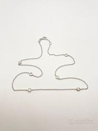 Collana in oro bianco 18 KT ( 750 ‰ )di grammi 3.80, modello tiffany, con diamanti naturali forma tonda e taglio a brillante ct 0.50 totali; purezza VVS colore G.