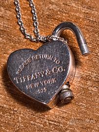 Collana Tiffany con ciondolo a forma di cuore con lucchetto apribile.
