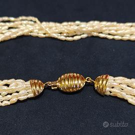 vendo collana torchon in oro giallo massiccio 18kt e perle di fiume ( 8 fili ). peso totale 50.7gr usata pochissimo.
