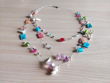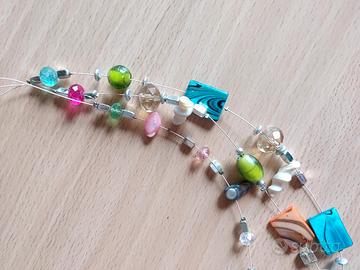 Collana molto bella e originale con tre fili in nylon molto leggera da indossare. Lunghezza 54cm il filo più stretto