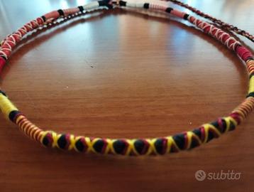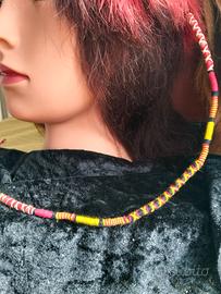 Collana/treccina artigianale in morbido filo di cotone egiziano N°5. Resistente ai lavaggi Lunghezza lavorazione 35 cm Disponibili in diversi colori Oltre ad essere utilizzata come girocollo o coroncina può essere applicata ai capelli con forcina e/o piccolo elastico. Realizzo su ordinazione (massimo 8 colori)