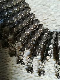 Elementi di collana e bracciale in metallo antichi provenienti dal Nord Africa, pendente con più cucchiaino e tre perle tipo ambra